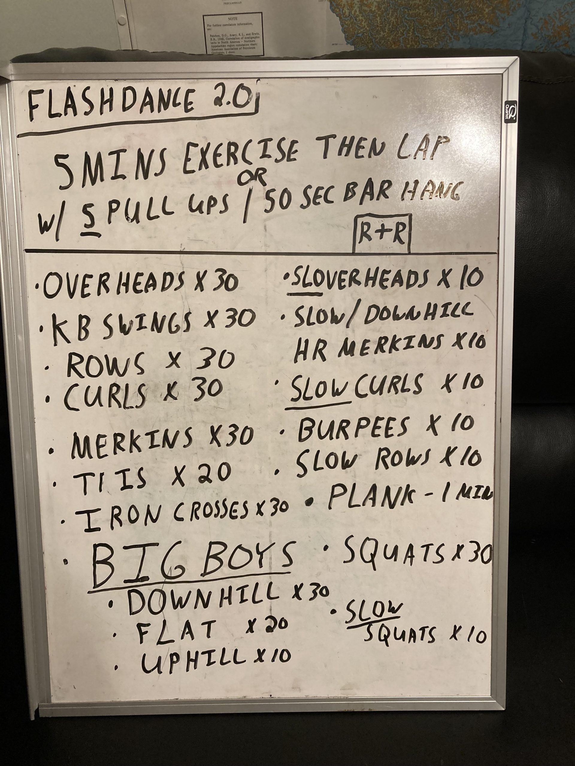 TClaps to the 8 pax that showed today to celebrate my extended return to the gloom and to Flashdance for inspiring (inspiring = creating) today’s Q.